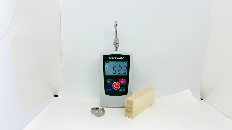 今回使用した接着剤はいずれも高い接着力を持つため、引張方向(垂直に引き離す方向)で試験を行うと、接着面が剥がれる前に木材やフックそのものが破損してしまう可能性があります。そこで本記事では、接着剤同士の性能差をより正確に比較する目的で、せん断方向(接着面を横方向にずらす方向)に力を加えて接着強度を測定しました。